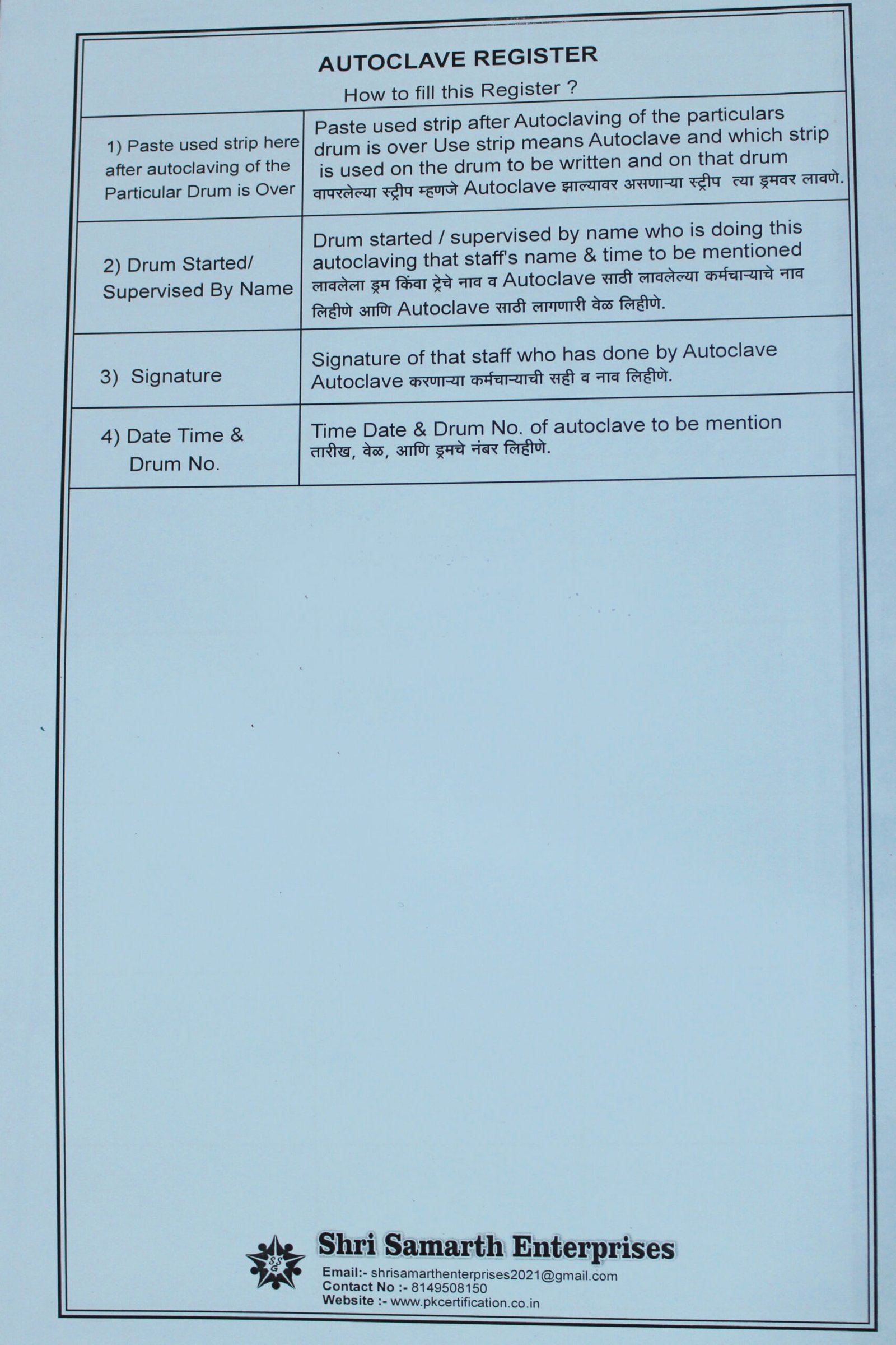 1.Product: Autoclave Register NABH Compliant for Hospital (200 Pages).